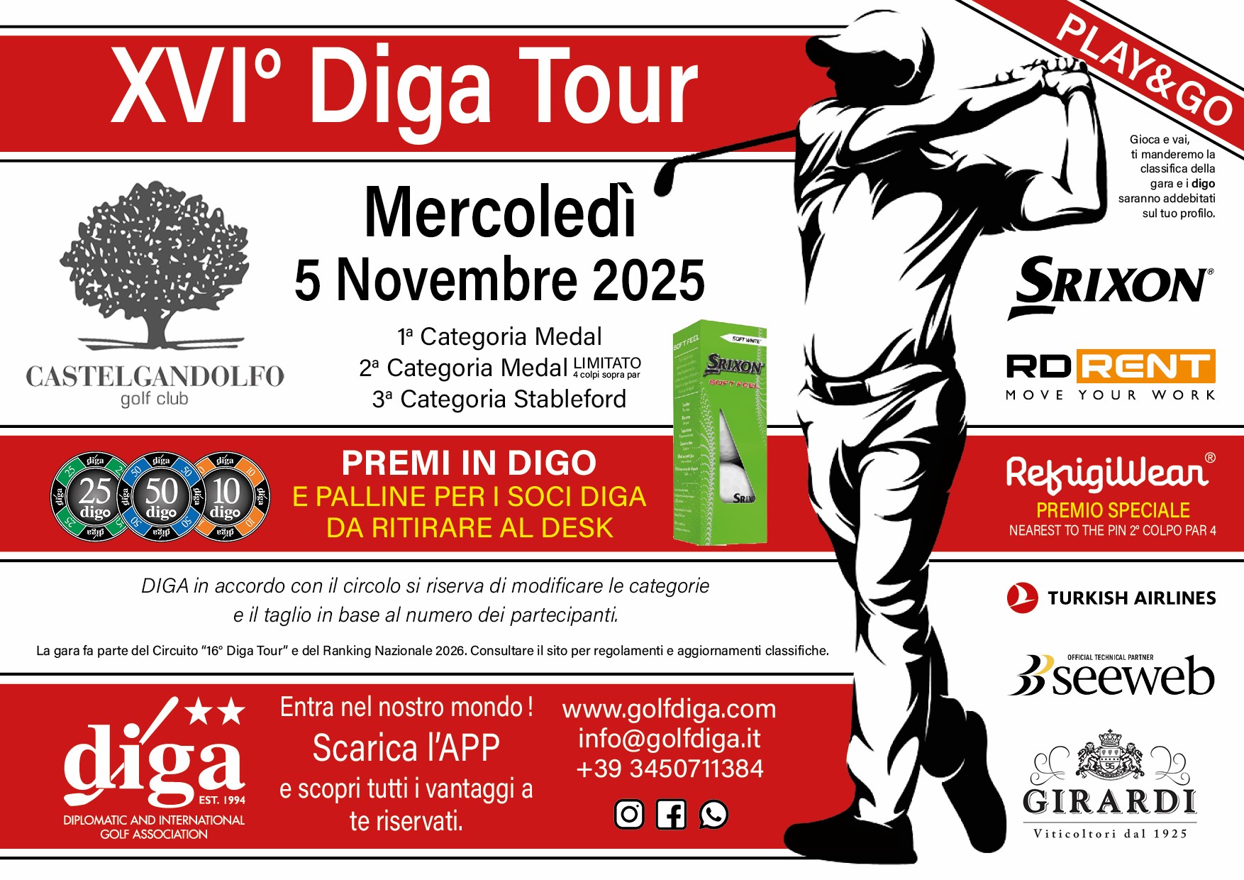 | Individuale | 18 | Medal 1ª e 2ª cat., Stableford 3ª | 3 | Si |